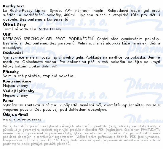 La Roche-Posay Lipikar Syndet AP+ náhradní náplň. Relipadační čisticí gel proti svědění a podráždění pokožky, 400ml. Hygiena suché a atopické kůže pro děti i dospělé. Bez parfému a konzervantů.