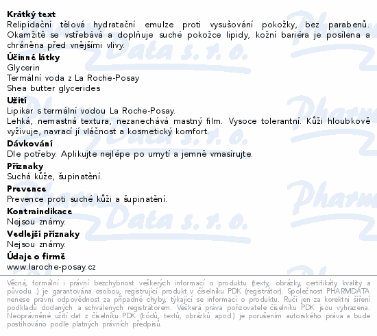 LA ROCHE-POSAY Lipikar relipidační tělové mléko proti vysušování. Tělové mléko poskytuje až 48 h zklidnění, ochranu a hydrataci. Je vhodný i pro velmi citlivou pokožku celé rodiny, od kojenců až po seniory. Tělové mléko je vyrobeno na bázi cold cream a je obohacené máslem z karité pro obnovu lipidů a vysokým obsahem termální vody z La Roche-Posay, která je známá svými přirozeně zklidňujícími a ochrannými vlastnostmi. Mléko obsahuje niacinamid pro dlouhodobý komfort všech typů suché pokožky, včetně té velmi jemné a citlivé.