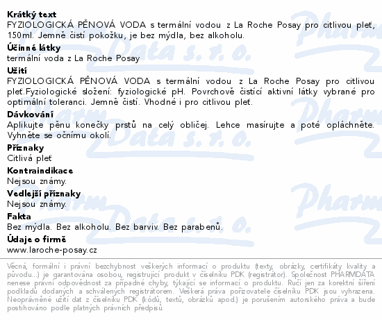 FYZIOLOGICKÁ PĚNOVÁ VODA s termální vodou z La Roche Posay pro citlivou pleť, 150ml. Jemně čistí pokožku, je bez mýdla, bez alkoholu.