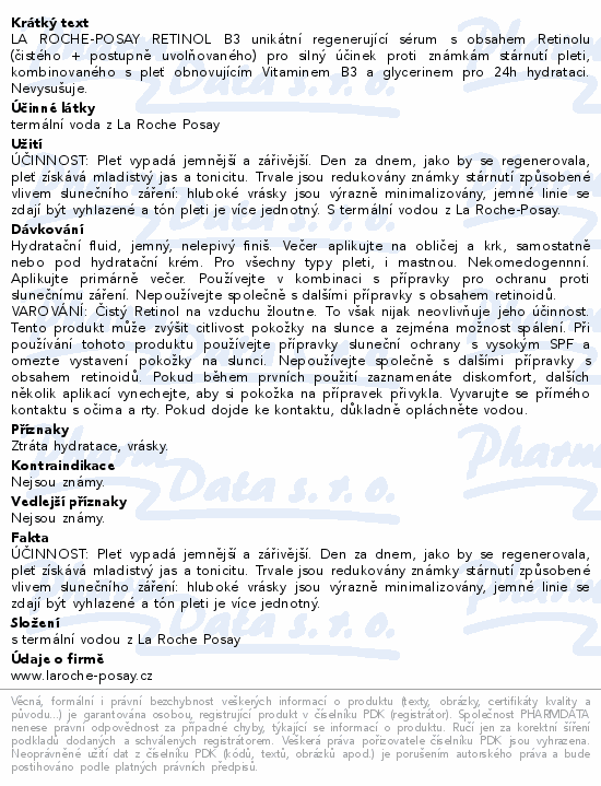 LA ROCHE-POSAY RETINOL B3 unikátní regenerující sérum s obsahem Retinolu (čistého + postupně uvolňovaného) pro silný účinek proti známkám stárnutí pleti, kombinovaného s pleť obnovujícím Vitaminem B3 a glycerinem pro 24h hydrataci. Nevysušuje.