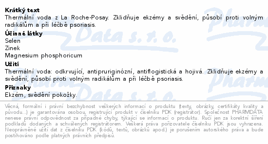 Thermální voda z La Roche-Posay. Zklidňuje ekzémy a svědění, působí proti volným radikálům a při léčbě psoriasis.