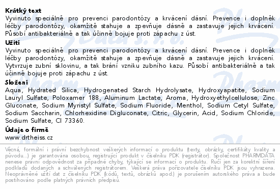 Vyvinuto speciálně pro prevenci parodontózy a krvácení dásní. Prevence i doplněk léčby parodontózy, okamžitě stahuje a zpevňuje dásně a zastavuje jejich krvácení. Působí antibakteriálně a tak účinně bojuje proti zápachu z úst.