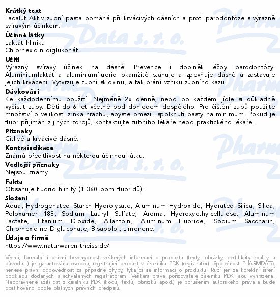 Lacalut Aktiv zubní pasta pomáhá při krvácivých dásních a proti parodontóze s výrazně svíravým účinkem.