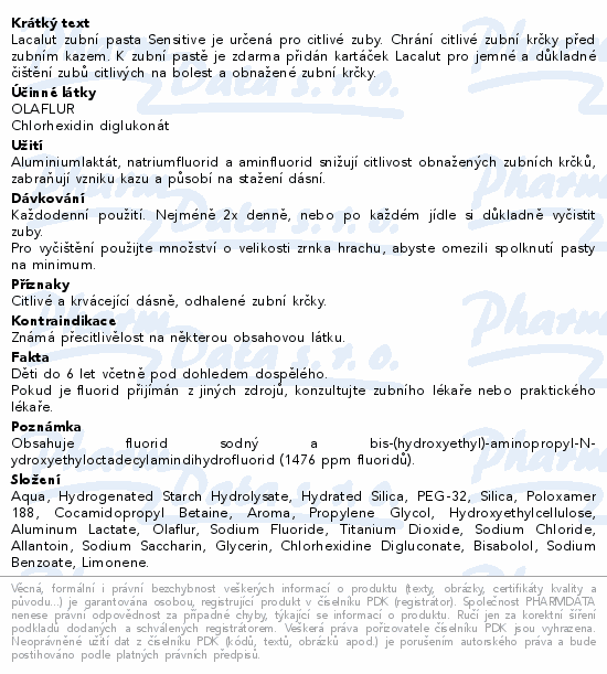 Lacalut zubní pasta Sensitive je určená pro citlivé zuby. Chrání citlivé zubní krčky před zubním kazem. K zubní pastě je zdarma přidán kartáček Lacalut pro jemné a důkladné čištění zubů citlivých na bolest a obnažené zubní krčky.