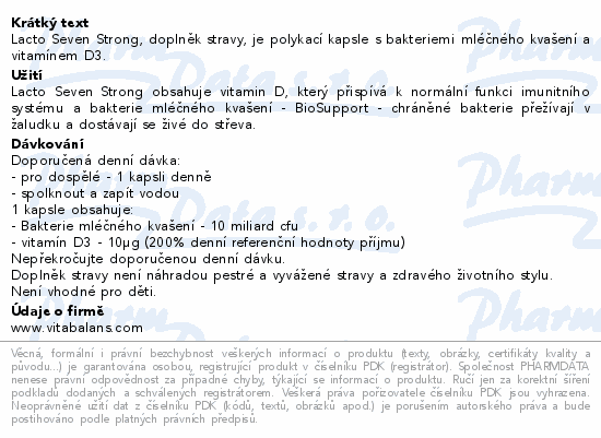 Lacto Seven Strong, doplněk stravy, je polykací kapsle s bakteriemi mléčného kvašení a vitamínem D3.