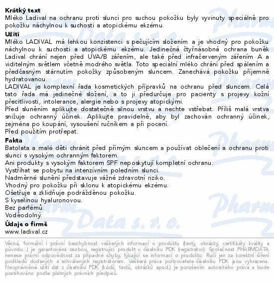 Mléko Ladival na ochranu proti slunci pro suchou pokožku byly vyvinuty speciálně pro pokožku náchylnou k suchosti a atopickému ekzému.