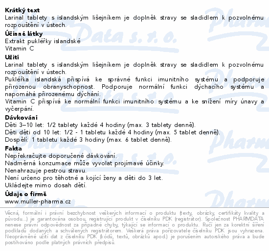 Larinal tablety s islandským lišejníkem je doplněk stravy se sladidlem k pozvolnému rozpouštění v ústech.