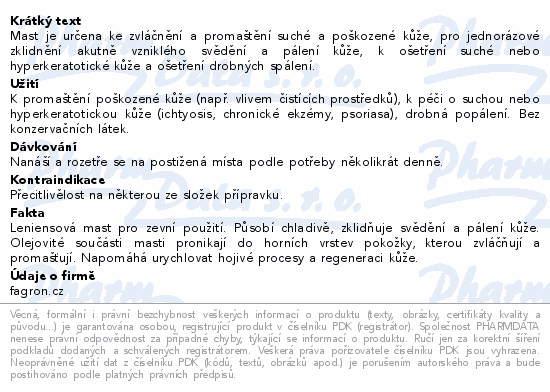 Mast je určena ke zvláčnění a promaštění suché a poškozené kůže, pro jednorázové zklidnění akutně vzniklého svědění a pálení kůže, k ošetření suché nebo hyperkeratotické kůže a ošetření drobných spálení.