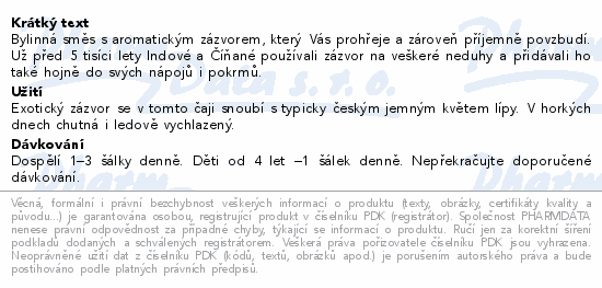 Bylinná směs s aromatickým zázvorem, který Vás prohřeje a zároveň příjemně povzbudí. Už před 5 tisíci lety Indové a Číňané používali zázvor na veškeré neduhy a přidávali ho také hojně do svých nápojů i pokrmů.