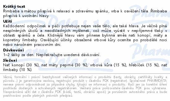 Řimbaba s mátou přispívá k relaxaci a zdravému spánku, vrba k osvěžení těla. Řimbaba přispívá k uvolnění hlavy.