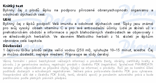 Bylinný čaj z plodů šípku na podporu přirozené obranyschopnosti organismu a odolnosti dýchacích cest.