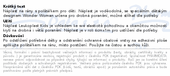 Náplast na rány s polštářkem pro děti. Náplast je voděodolná, se speciálním dětským designem Wonder Woman určena pro drobná poranění, možné stříhat dle potřeby.