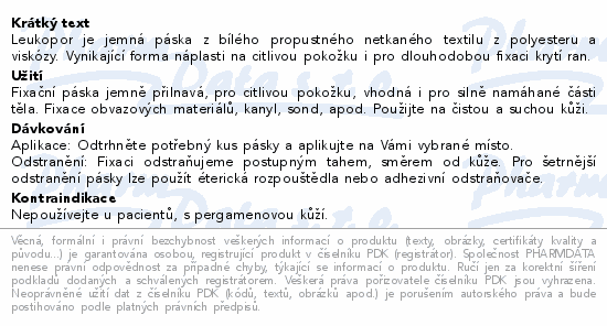 Leukopor je jemná páska z bílého propustného netkaného textilu z polyesteru a viskózy. Vynikající forma náplasti na citlivou pokožku i pro dlouhodobou fixaci krytí ran.