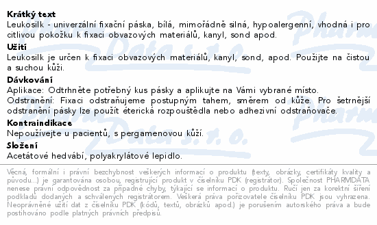 Leukosilk - univerzální fixační páska, bílá, mimořádně silná, hypoalergenní, vhodná i pro citlivou pokožku k fixaci obvazových materiálů, kanyl, sond apod.