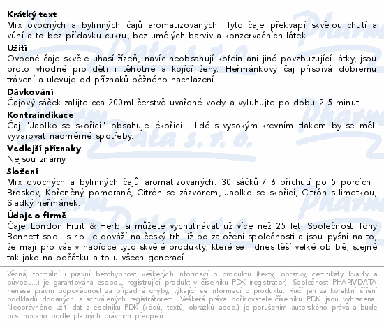 Mix ovocných a bylinných čajů aromatizovaných. Tyto čaje překvapí skvělou chutí a vůní a to bez přídavku cukru, bez umělých barviv a konzervačních látek.