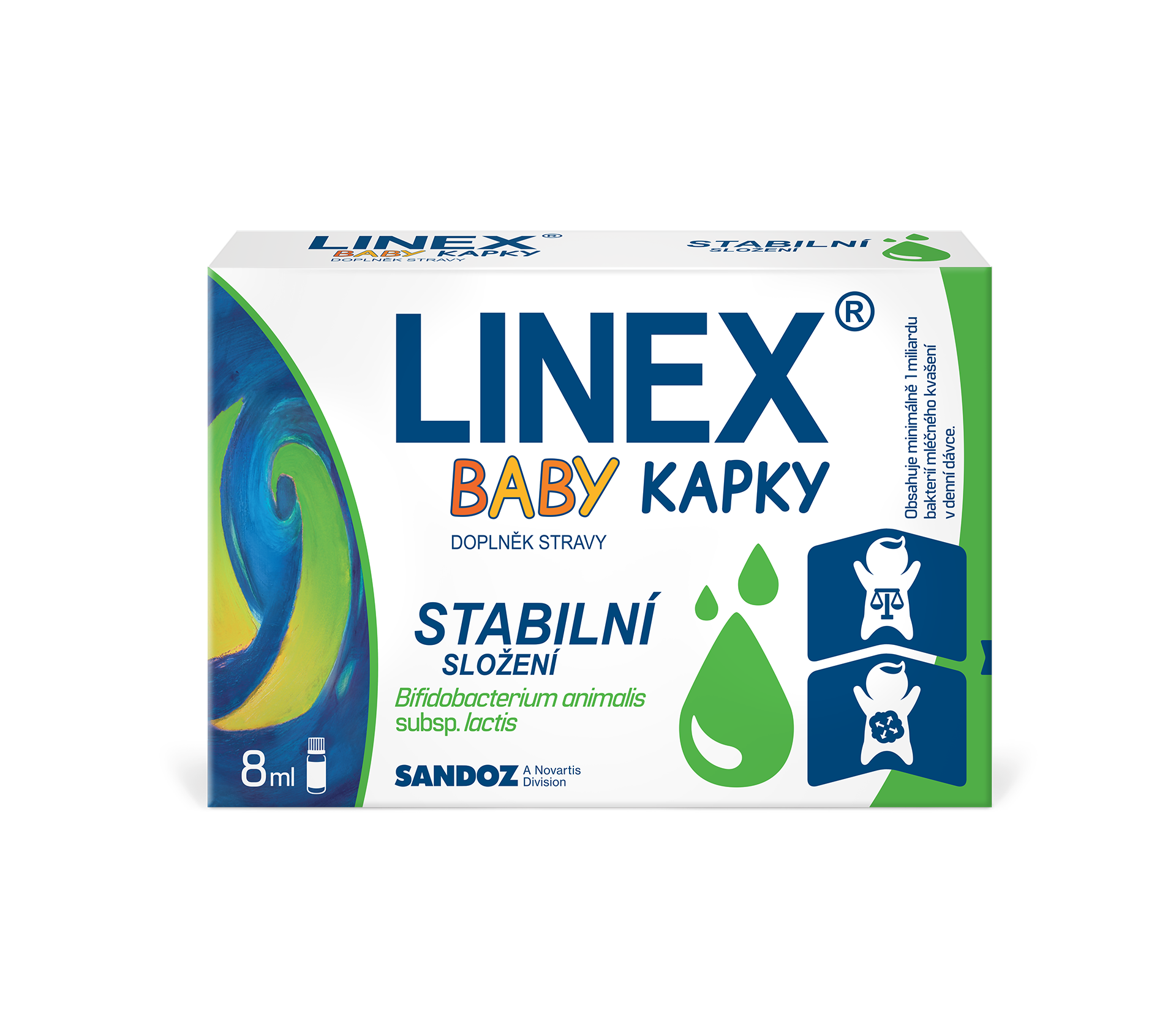 Doplněk stravy Linex baby kapky obsahují živé lyofilizované bakterie rodu Bifidobacterium animalis subsp. lactis.
