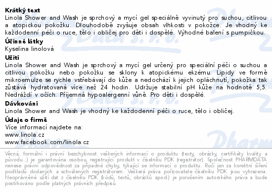 Linola Shower and Wash je sprchový a mycí gel speciálně vyvinutý pro suchou, citlivou a atopickou pokožku. Dlouhodobě zvyšuje obsah vlhkosti v pokožce. Je vhodný ke každodenní péči o ruce, tělo i obličej pro děti i dospělé. Výhodné balení s pumpičkou.