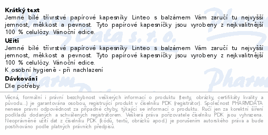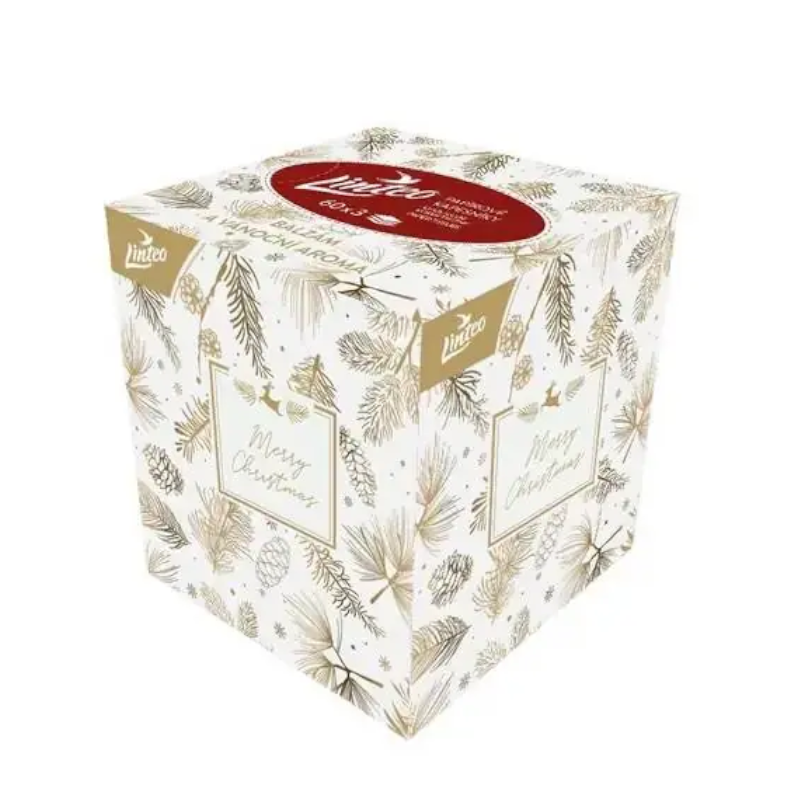 Jemné bílé třívrstvé papírové kapesníky Linteo s balzámem Vám zaručí tu nejvyšší jemnost, měkkost a pevnost. Tyto papírové kapesníčky jsou vyrobeny z nejkvalitnější 100 % celulózy. Vánoční edice.
