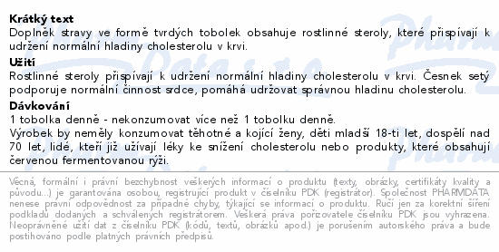 Doplněk stravy ve formě tvrdých tobolek obsahuje rostlinné steroly, které přispívají k udržení normální hladiny cholesterolu v krvi.