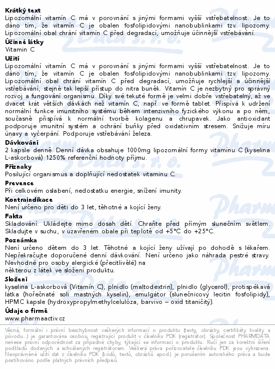 Lipozomální vitamín C má v porovnání s jinými formami vyšší vstřebatelnost. Je to dáno tím, že vitamín C je obalen fosfolipidovými nanobublinkami tzv. lipozomy. Lipozomální obal chrání vitamín C před degradací, umožňuje účinnější vstřebávání.