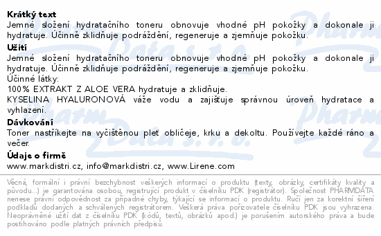 Lirene Power of Plants hydratační toner Aloe 200ml