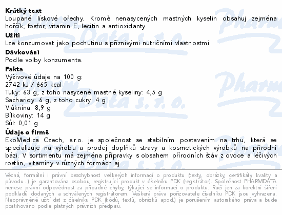 Lískové ořechy blanšírované 250g EkoMedica