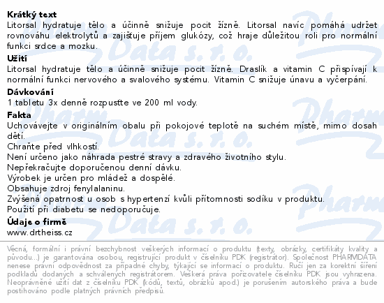 Litorsal hydratuje tělo a účinně snižuje pocit žízně. Litorsal navíc pomáhá udržet rovnováhu elektrolytů a zajišťuje příjem glukózy, což hraje důležitou roli pro normální funkci srdce a mozku.
