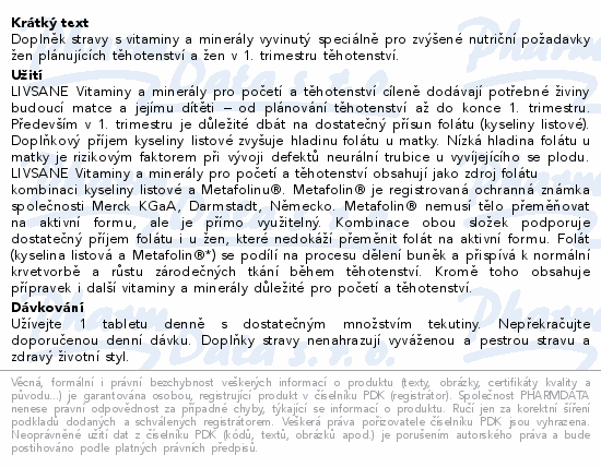 LIVSANE Vitaminy+minerály pro početí+těhot.tbl.30