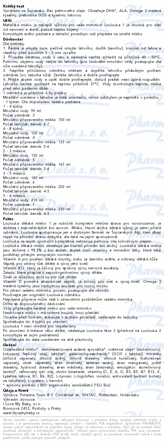 Loulouka kojenecké počáteční mléko 1 BIO 900g
