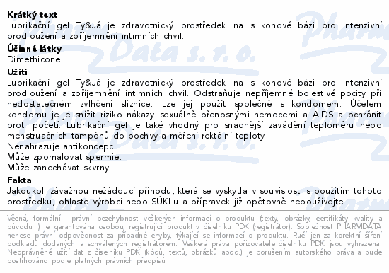 Lubrikační gel Ty&Já je zdravotnický prostředek na silikonové bázi pro intenzivní prodloužení a zpříjemnění intimních chvil.