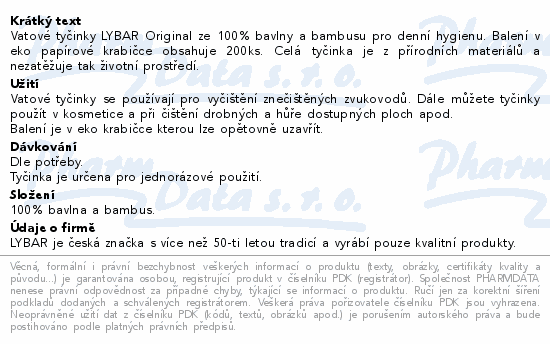 Lybar Vatové tyčinky Natural krabička 200ks