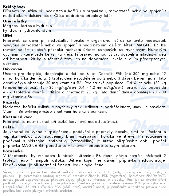 | Farmako-terapeutická skupina, účinné látky: | TRÁVICÍ TRAKT A METABOLISMUS -> MINERÁLNÍ DOPLŇKY -> JINÉ MINERÁLNÍ DOPLŇKY -> HOŘČÍK -> |