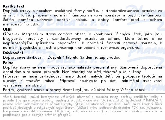 Doplněk stravy s obsahem chelátové formy hořčíku a standardizovaného extraktu ze šafránu. Hořčík přispívá k normální činnosti nervové soustavy a psychické činnosti. Šafrán pomáhá udržovat pozitivní náladu a dobrý komfort před a během menstruačního cyklu.