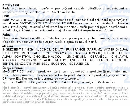 MAGNETIFICO Pheromone Allure pro ženu 50ml