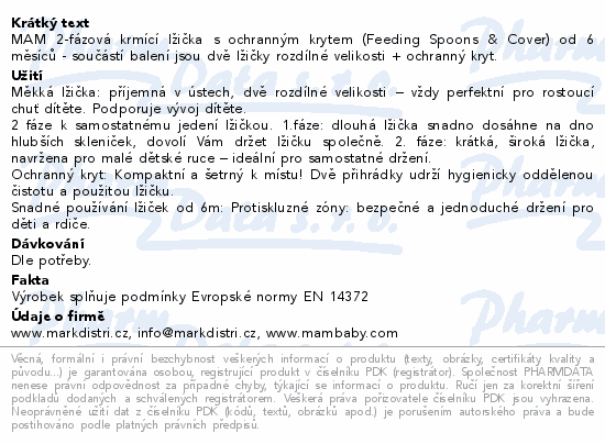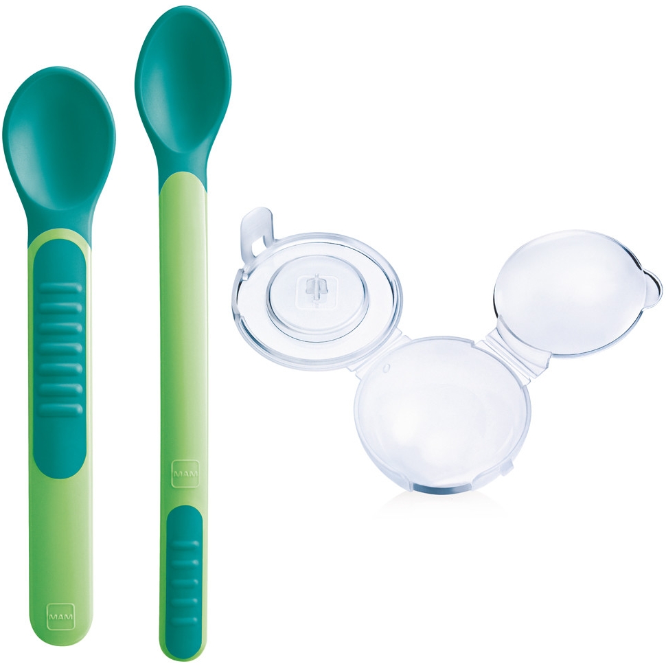 MAM 2-fázová krmící lžička s ochranným krytem (Feeding Spoons & Cover) od 6 měsíců - součástí balení jsou dvě lžičky rozdílné velikosti + ochranný kryt.