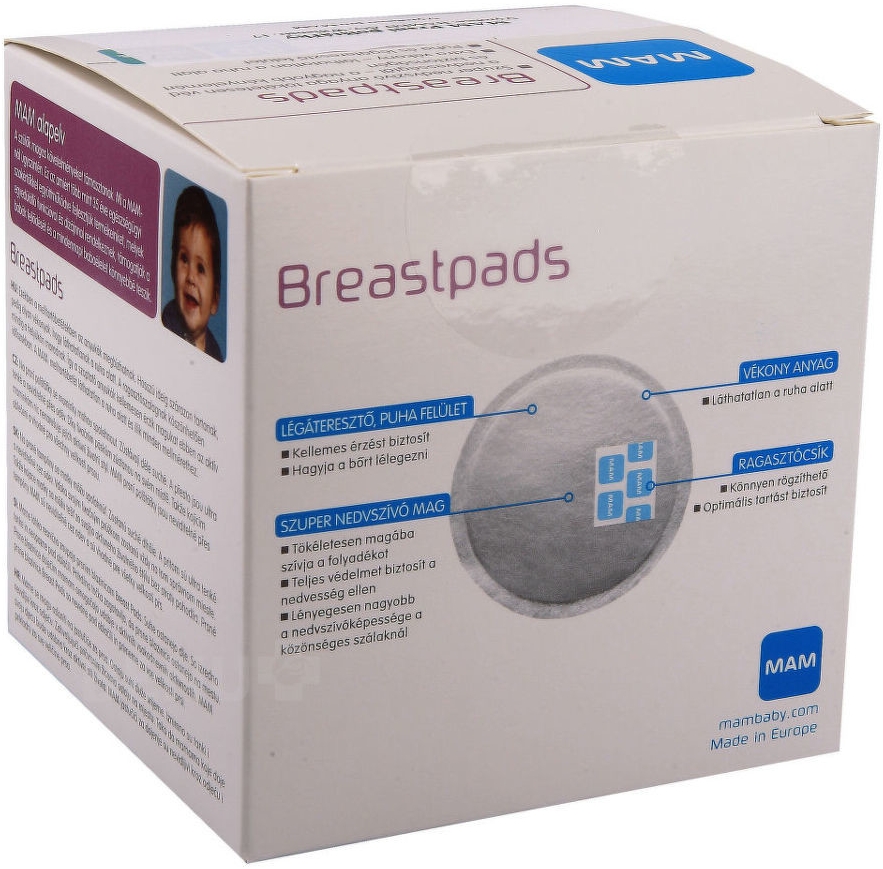 MAM care prsní polštářky, pomůcka pro kojící matky. Prsní polštářky jsou velmi tenké (2mm), neviditelné. Plně absorbují pro dlouhý pocit sucha.