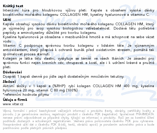 Intenzivní kúra pro hloubkovou výživu pleti. Kapsle s obsahem vysoké dávky bioaktivního mořského kolagenu COLLAGEN HM, kyseliny hyaluronové a vitaminu C.
