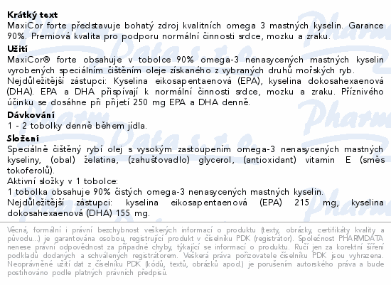 MaxiCor forte představuje bohatý zdroj kvalitních omega 3 mastných kyselin. Garance 90%. Premiová kvalita pro podporu normální činnosti srdce, mozku a zraku.