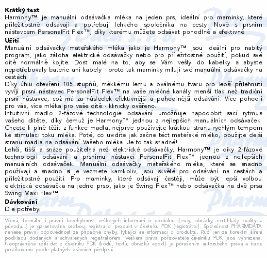 Harmony™ je manuální odsávačka mléka na jeden prs, ideální pro maminky, které příležitostně odsávají a potřebují lehkého společníka na cesty. Nově s prsním nástavcem PersonalFit Flex™, díky kterému můžete odsávat pohodlně a efektivně.