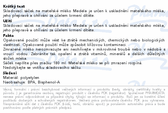 Skladovací sáček na mateřské mléko Medela je určen k uskladnění mateřského mléka, jeho přepravě a ohřívání za účelem krmení dítěte.