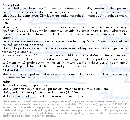 Nové vložky poskytují vyšší savost a vstřebatelnost díky novému absorpčnímu materiálu, udržují delší dobu sucho, jsou měkčí a bezpečnější. Flexibilní tvar se přizpůsobí každému prsu. Díky lepícímu pásku nedochází k nežádoucímu pohybu vložky v podprsence.