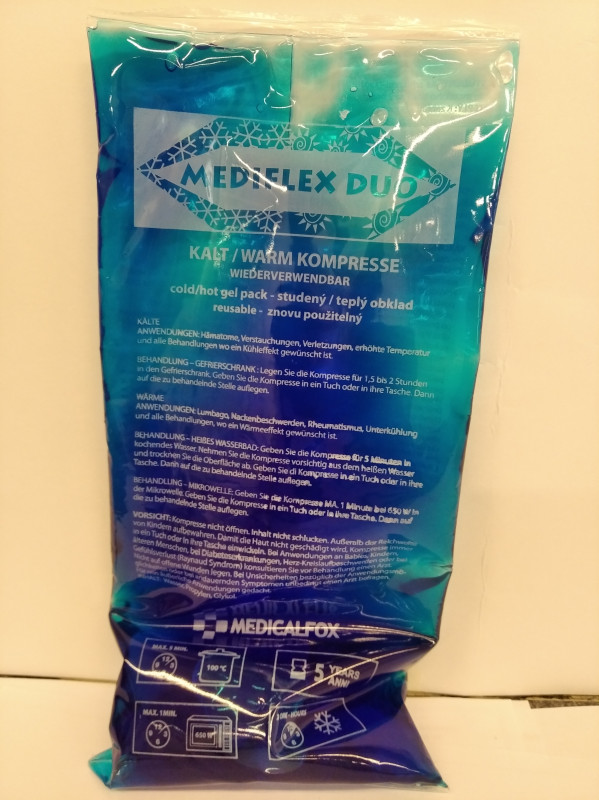 Opakovaně použitelný gelový sáček pro studený/teplý obklad. Je možno jej použít jak pro zchlazení, tak jako hřejivý obklad ke zmírnění následku menších poranění.