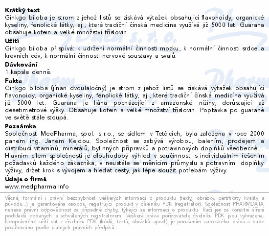 MedPharma Ginkgo biloba+guarana cps.67