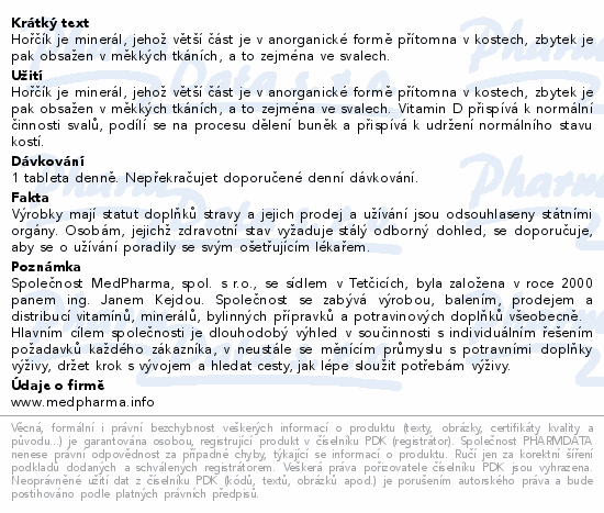 MedPharma Hořčík 300mg Vitamin D3 je doplněk stravy ve formě tablet, který obsahuje hořčík obohacený o vitamin D3.