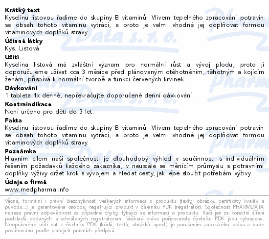Kyselinu listovou řadíme do skupiny B vitaminů. Vlivem tepelného zpracování potravin se obsah tohoto vitaminu vytrácí, a proto je velmi vhodné jej doplňovat formou vitaminových doplňků stravy.