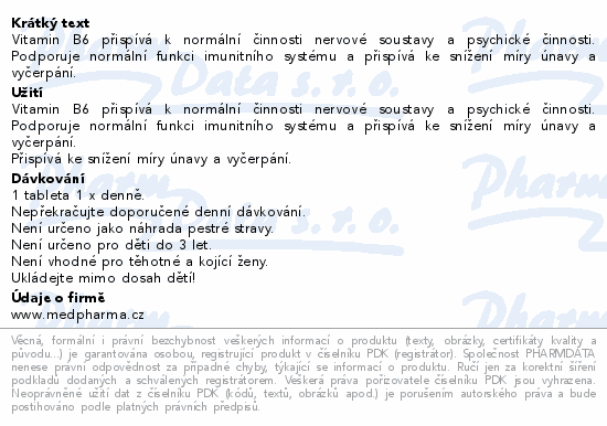 MedPharma Pyridoxin (vitamin B6) 20mg tbl.67