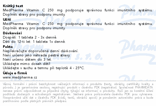 MedPharma Vitamin C 250 mg podporuje správnou funkci imunitního systému. Doplněk stravy pro podporu imunity.