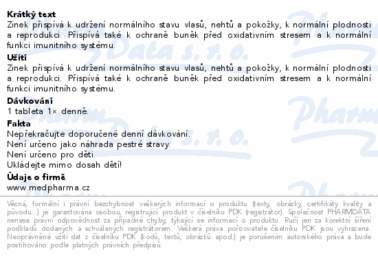 Zinek přispívá k udržení normálního stavu vlasů, nehtů a pokožky, k normální plodnosti a reprodukci. Přispívá také k ochraně buněk před oxidativním stresem a k normální funkci imunitního systému.