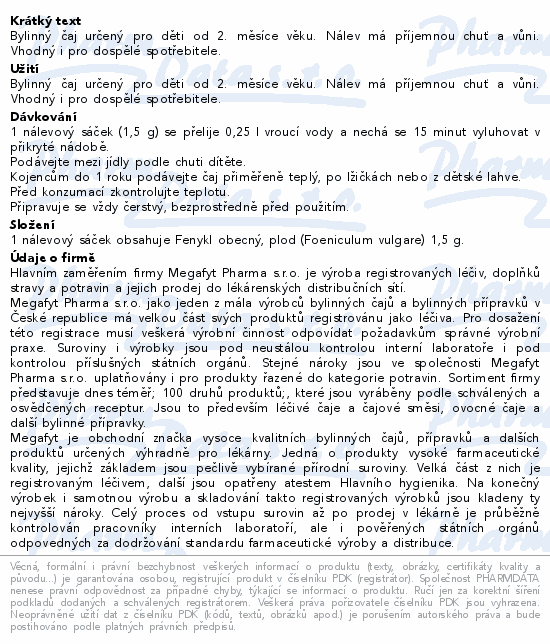 Megafyt Bylinný čaj Fenykl pro děti 20x1.5g