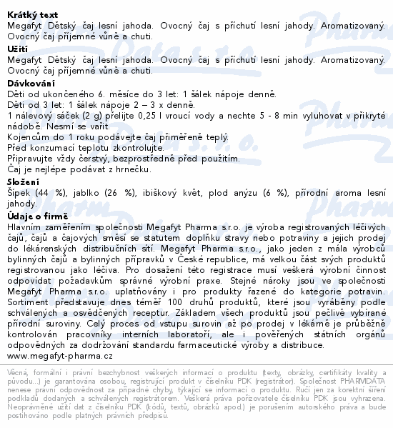 Megafyt Dětský čaj lesní jahoda. Ovocný čaj s příchutí lesní jahody. Aromatizovaný. Ovocný čaj příjemné vůně a chuti.